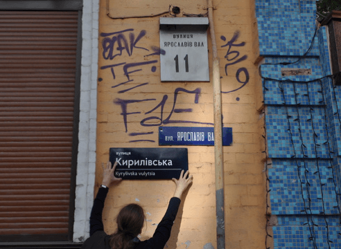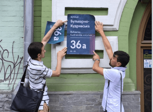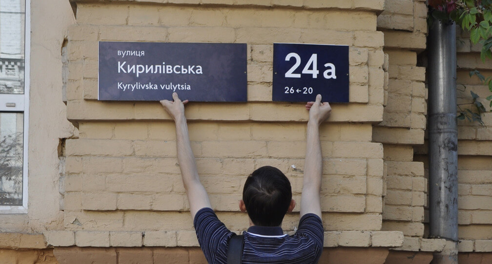 Майже півтори сотні вулиць у Києві змінили назву протягом останніх двох років. Це означає, що адресні таблички доведеться замінити на тисячах будинків. Нам здається, це чудова можливість навести, нарешті, лад у тому «зоопарку» табличок, які за відсутності єдиного стандарту створили хаос на стінах будинків. Ми розробили ескізний зразок і нещодавно підписали меморандум з міським головою щодо розробки нових адресних покажчиків на основі нашого прототипу.