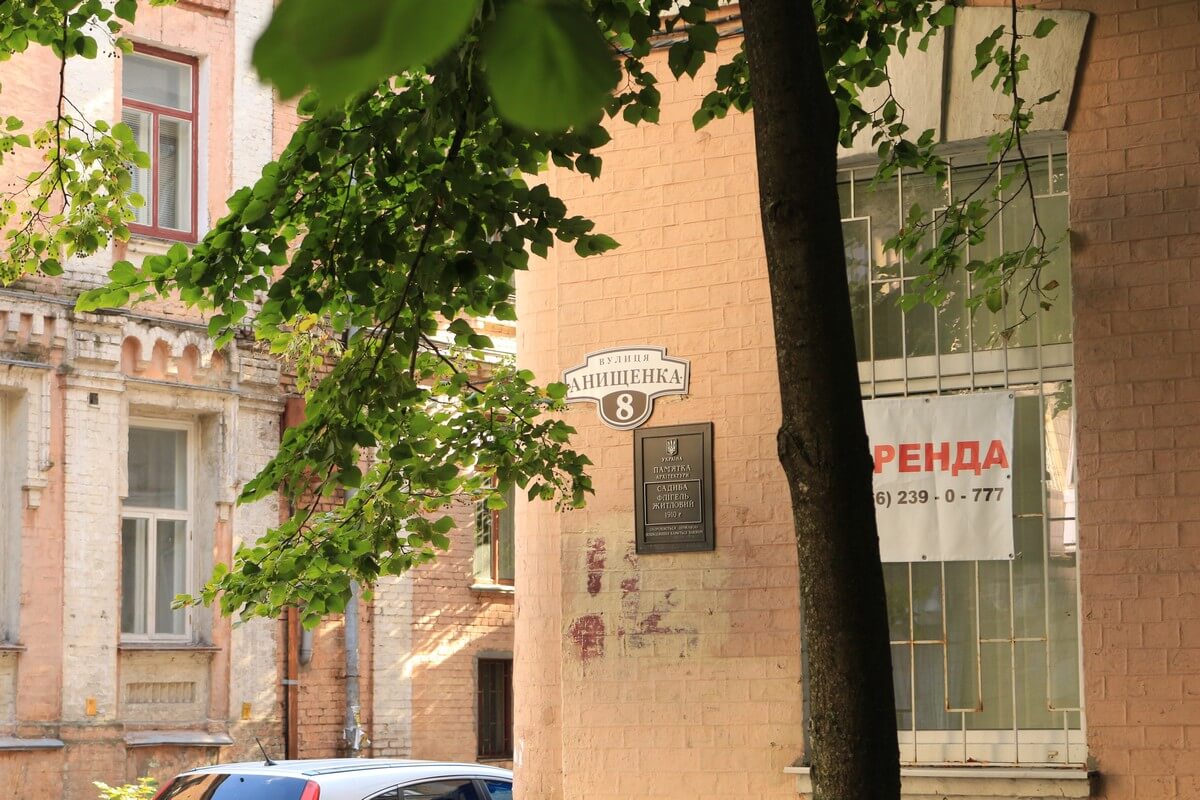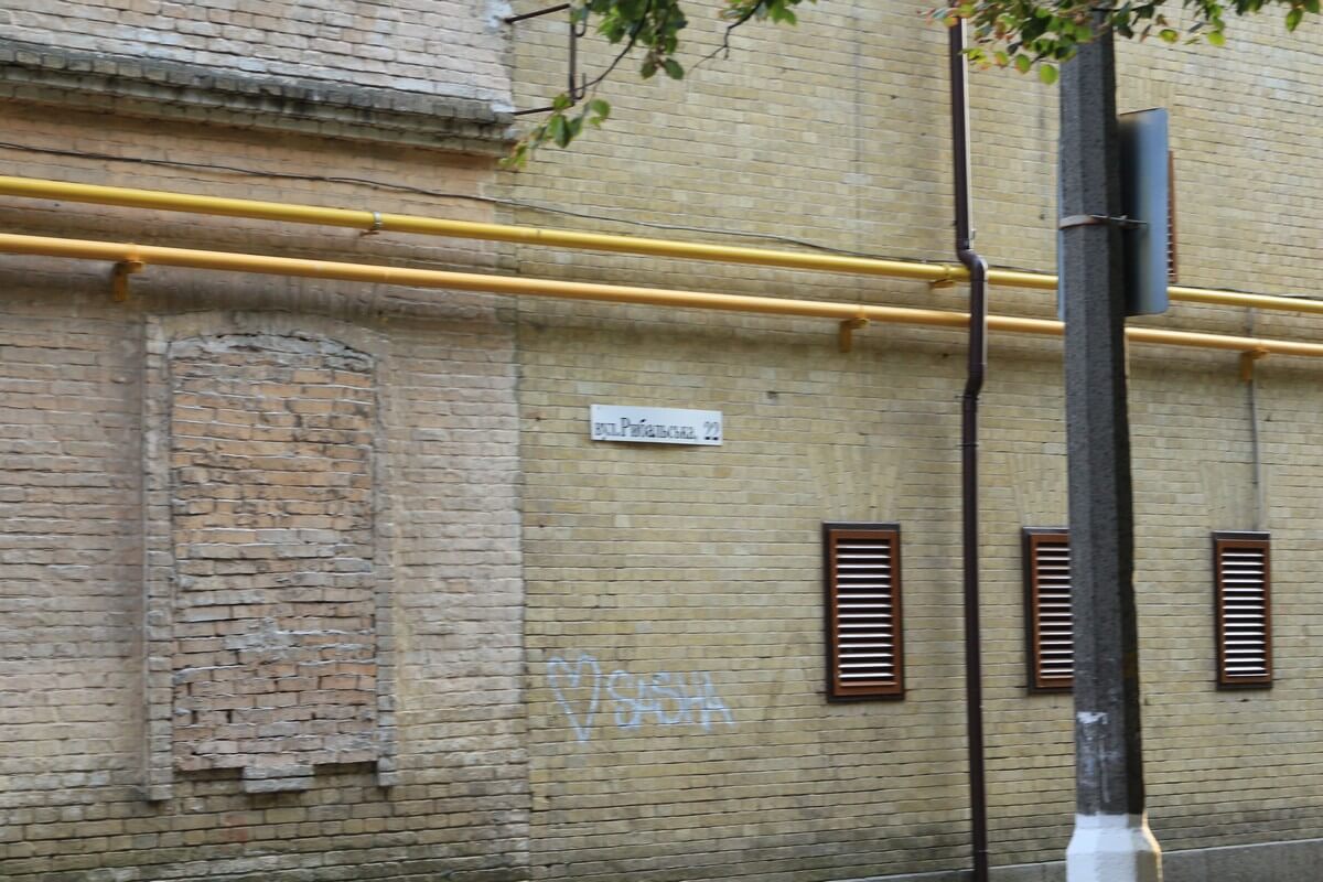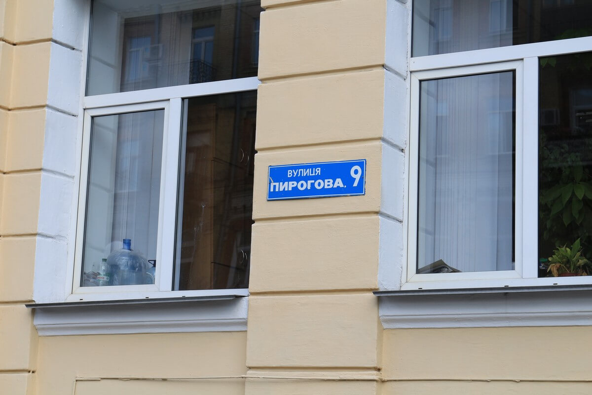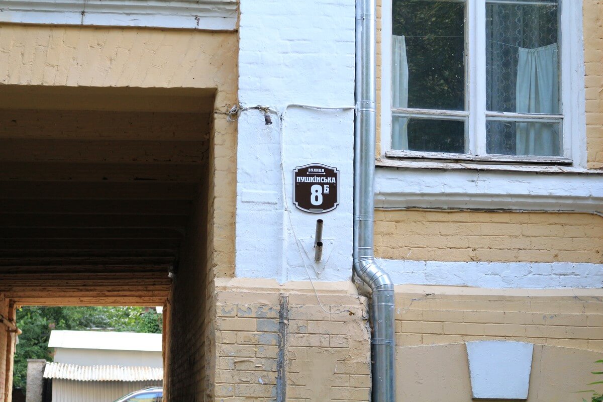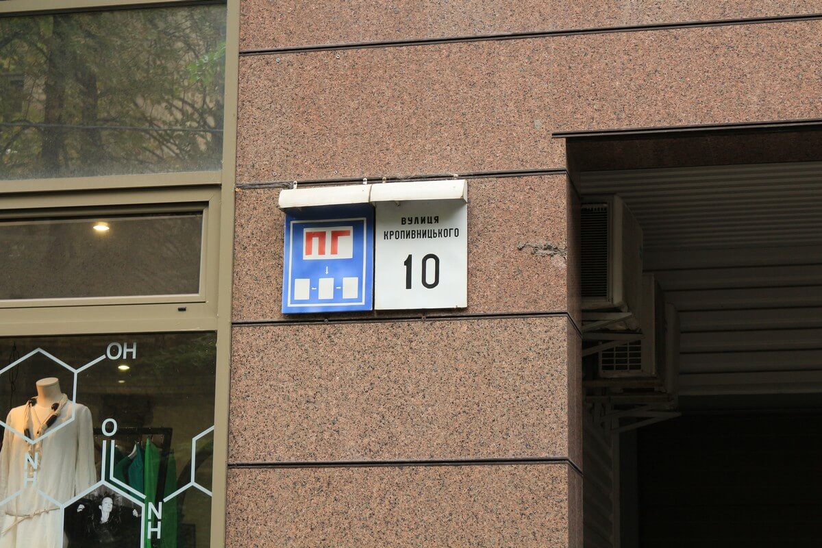 В Києві кожну будівлю пофарбовано у власний колір, тому тло нашої таблички повинно бути контрастним до більшості з них та виділяти табличку серед інших вивісок. Для цього ми обрали темно-синій колір, наближений до кольору старих адресних табличок, які іноді ще можна знайти в місті.