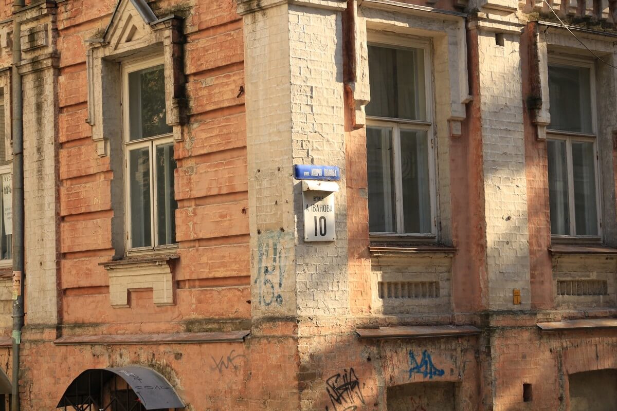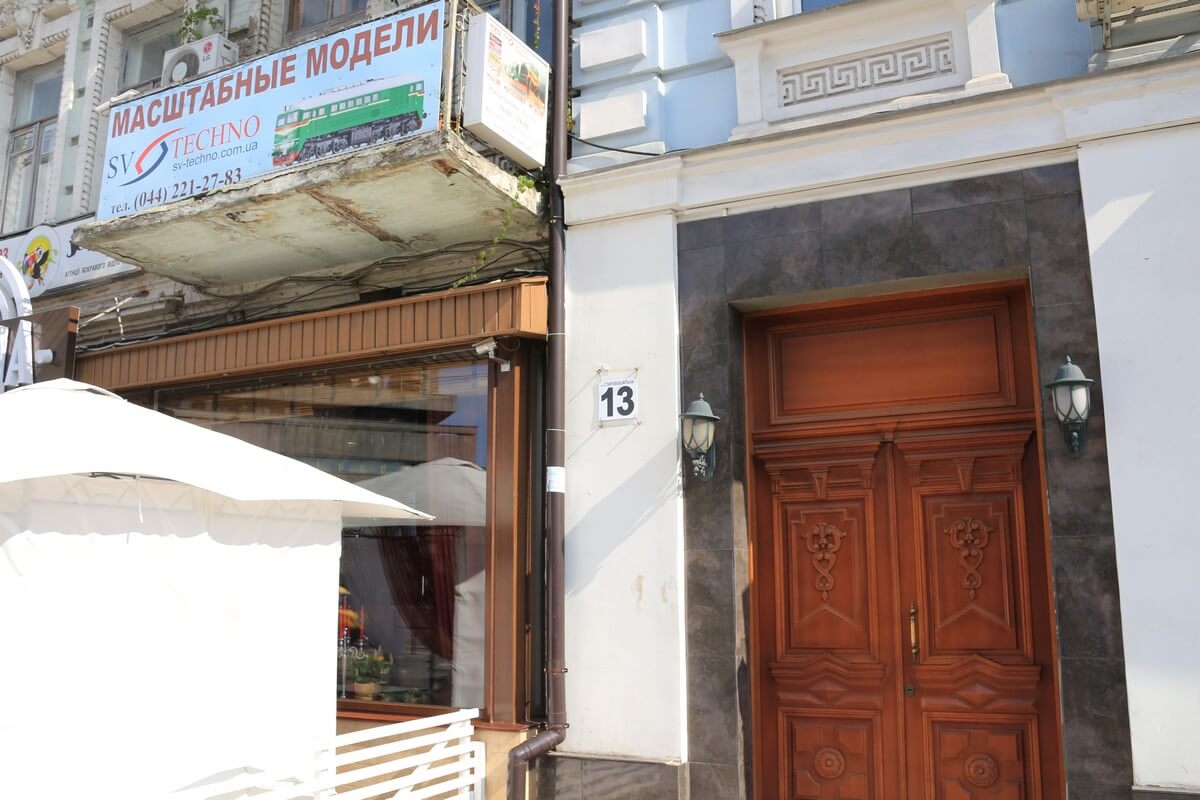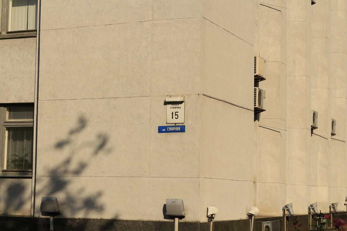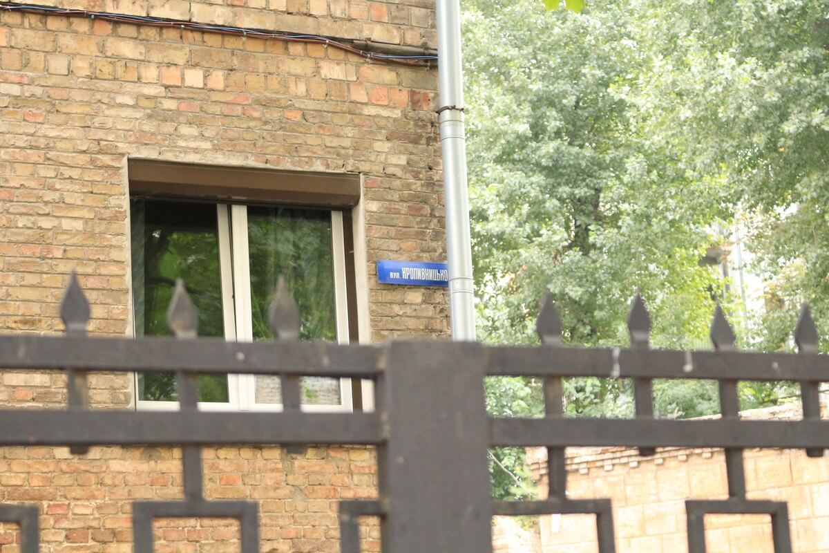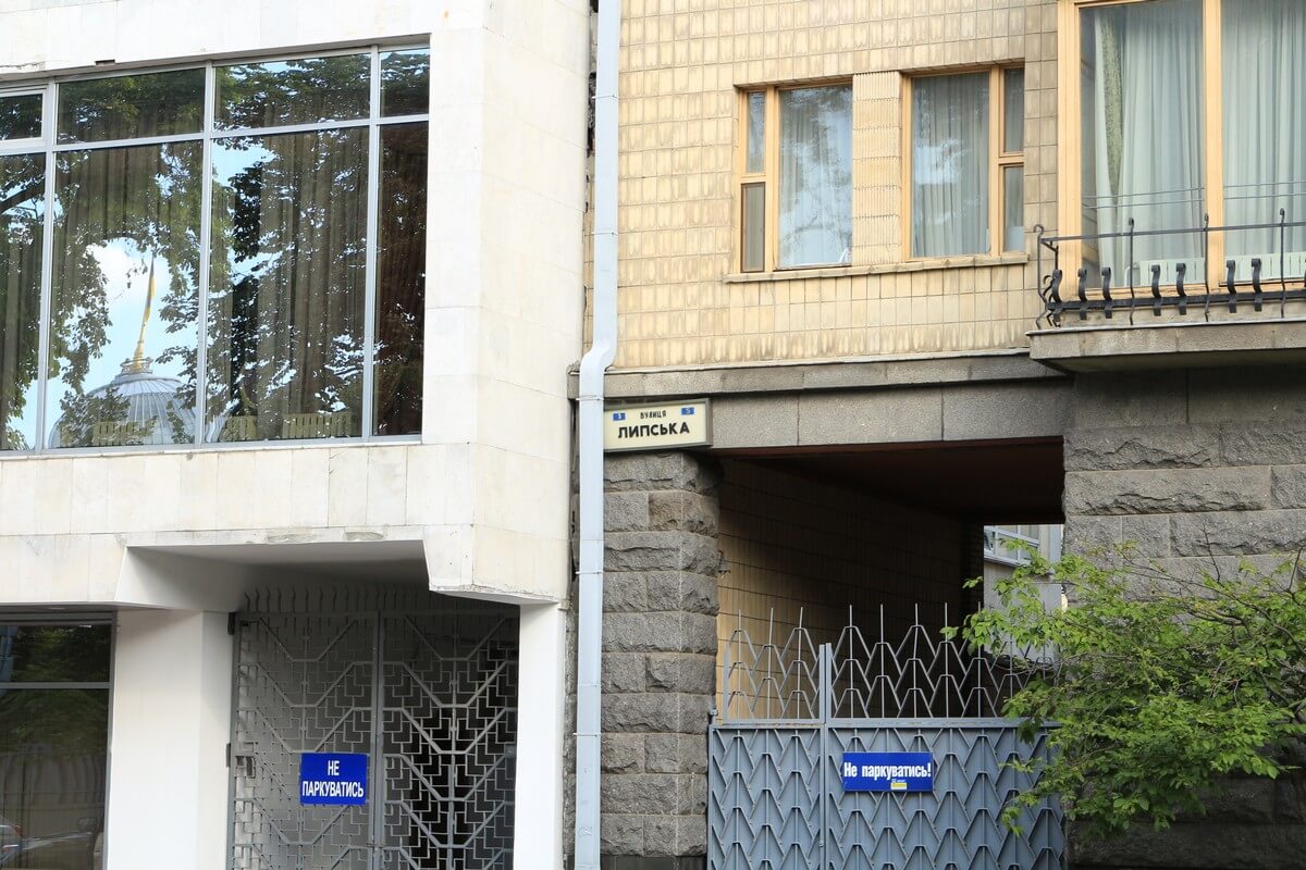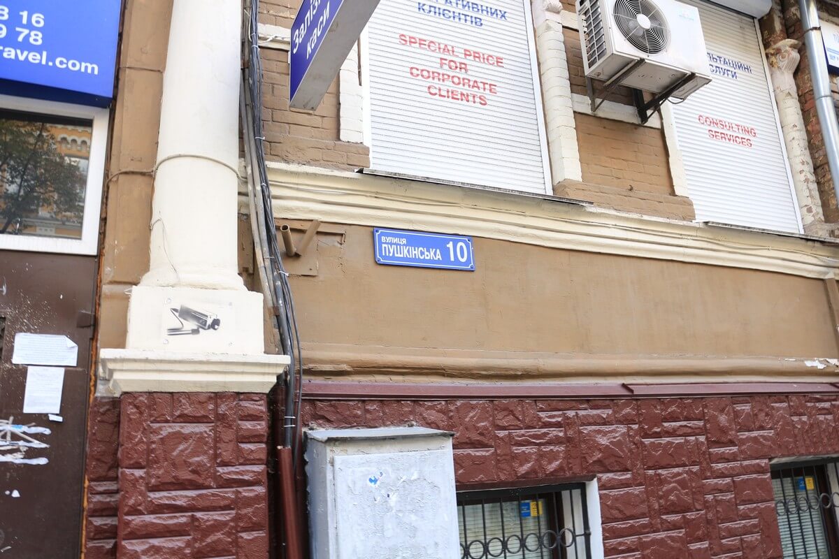 В Києві кожну будівлю пофарбовано у власний колір, тому тло нашої таблички повинно бути контрастним до більшості з них та виділяти табличку серед інших вивісок. Для цього ми обрали темно-синій колір, наближений до кольору старих адресних табличок, які іноді ще можна знайти в місті.