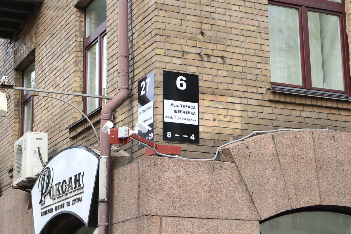 В Києві відсутня єдина система адресних покажчиків. За декілька десятиліть на стінах будинків назбиралась чимала кількість різноманітних табличок. Всі вони різних розмірів, кольорів, ба навіть з різним інформаційним наповненням. На одних ми бачимо лише назву вулиці, на інших — ще й номер будинку, під’їзду, кількість квартир, фото Батьківщини-матері, а в найгіршому випадку ще й рекламу.