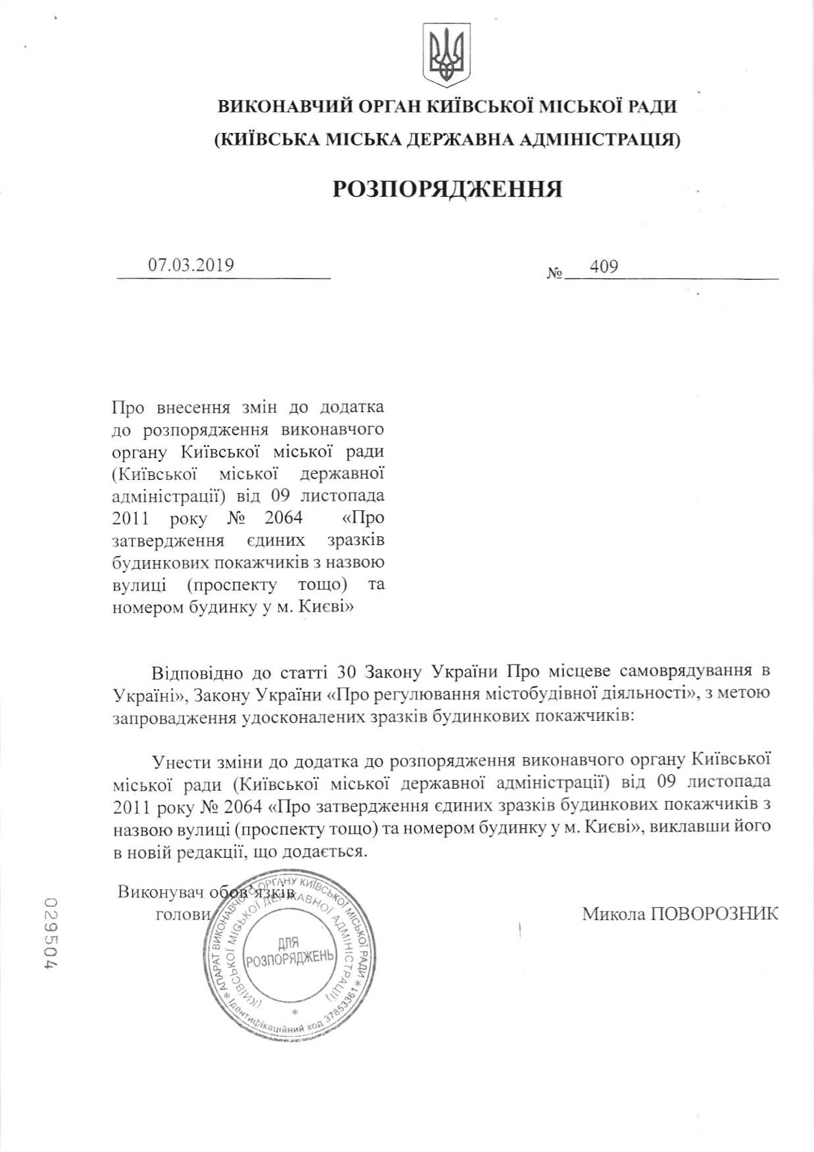 Завантажити: Розпорядження КМДА № 409 (PDF, 2 МБ) · Пояснювальну записку (PDF, 300 КБ)