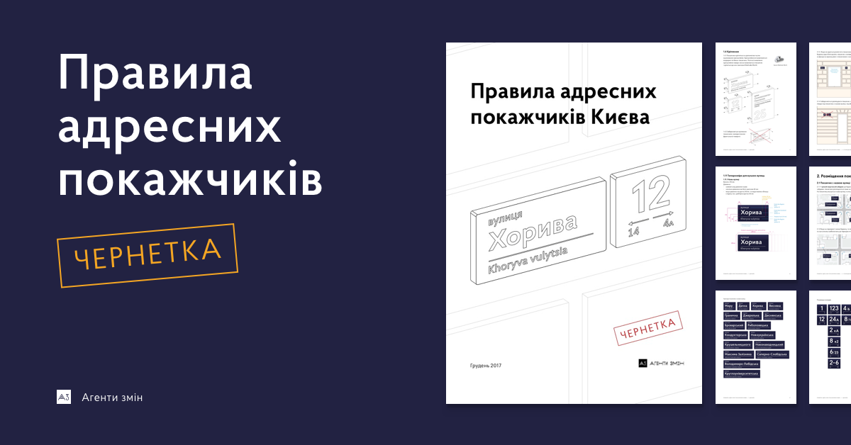 Після досліджень, тестувань, обговорень ми створили довідник з Правилами адресних покажчиків Києва. У ньому ми описали основи їхнього дизайну та системи розміщення.